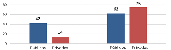 | PÚBLICAS | 42 | 62 | 104 |